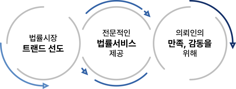 처리하는 차별화된 법률서비스를 제공함으로써 고객 모두가 만족할 수 있는 고객 중심의 법인으로 자리잡고