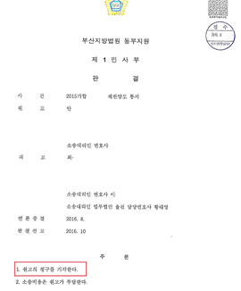 원고의 청구가 기각되어 피고(의뢰인)가 승소하였습니다.
