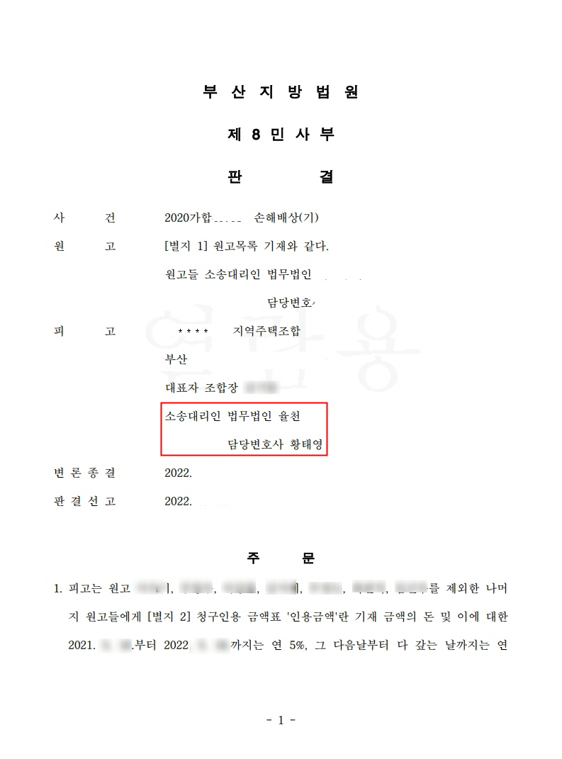 율천은 조합측(의뢰인)의 사업으로 인한