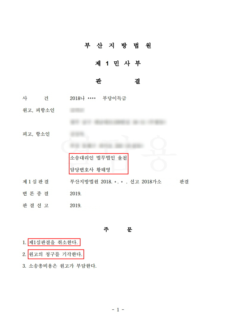 항소심에서 피고(의뢰인) 승소하였습니다.