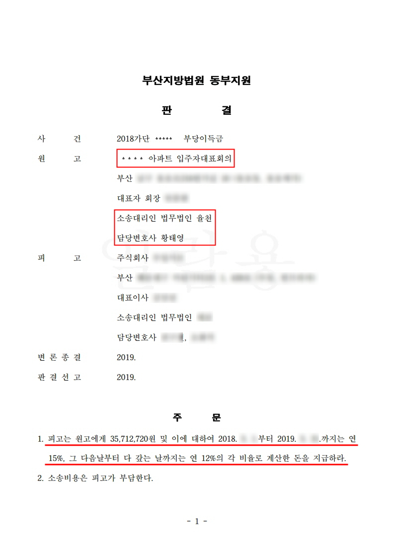 원고 입주자대표회의(의뢰인)가 부산도시공사로부터 위·수탁 계약을 위임 받았다는 계약상의 내용을 근거로 하여 위임계약에 해당하므로 피고로부터 잔여 선급비용에 해당하는 부당이득의 반환을 청구할 지위에 해당한다고 변론하였습니다.
